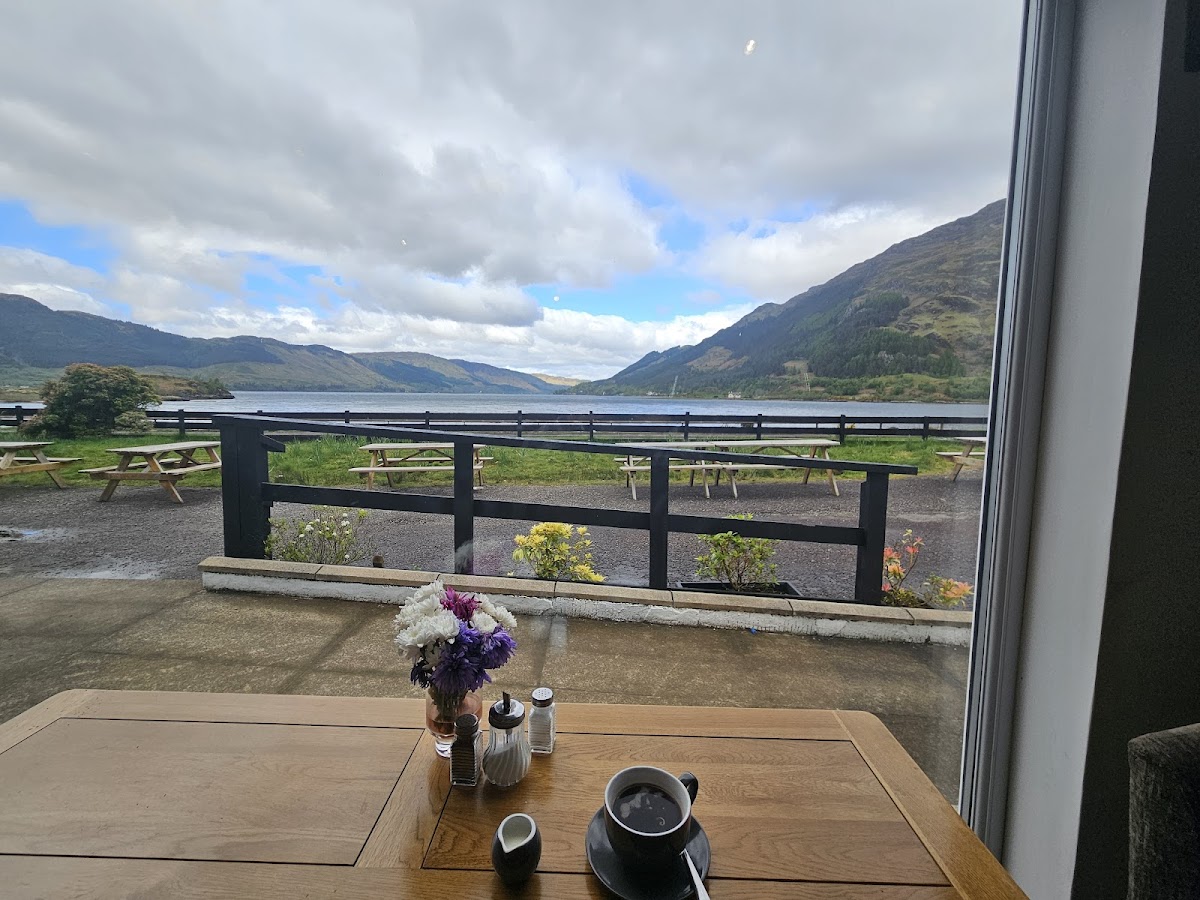 Great little cafe with a great view. Stopped in today on way from Skye to Fort William. Very warm welcome and some chat from the staff. Was a little sad they don’t do a breakfast and just breakfast rolls but had 2 double breakfast rolls (bacon&egg and black pudding&egg) both were excellent. Wife had sausage and tattie scone roll and said it was also very good. If this was more local to me I would absolutely be back. Don’t miss this place out.